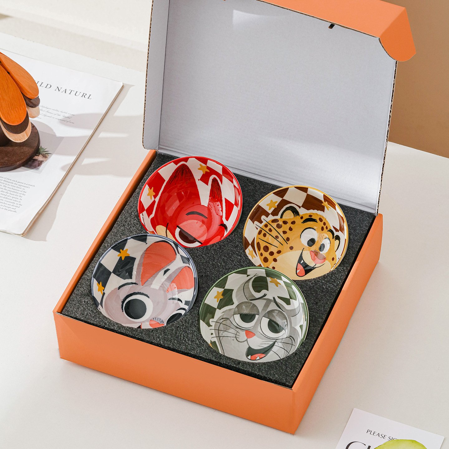 4.5” Crazy Animal City Surrounding Ceramic Bowl Set (4pcs/box) – 2026 New High Beauty Tableware Set, Birthday Gift, Breakfast Oat Bowl